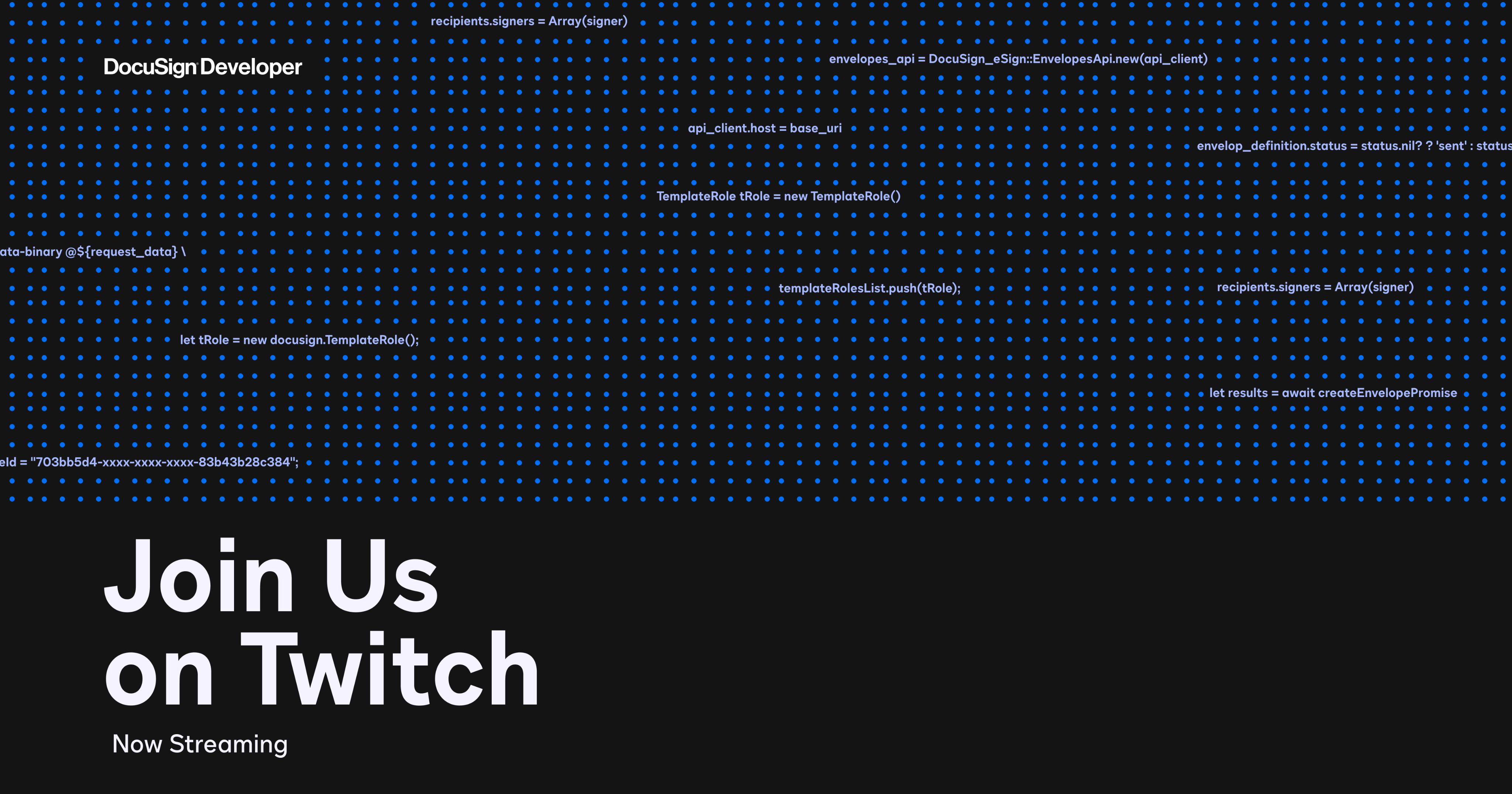 Visual design for a purpose-driven hackathon hosted by DocuSign.