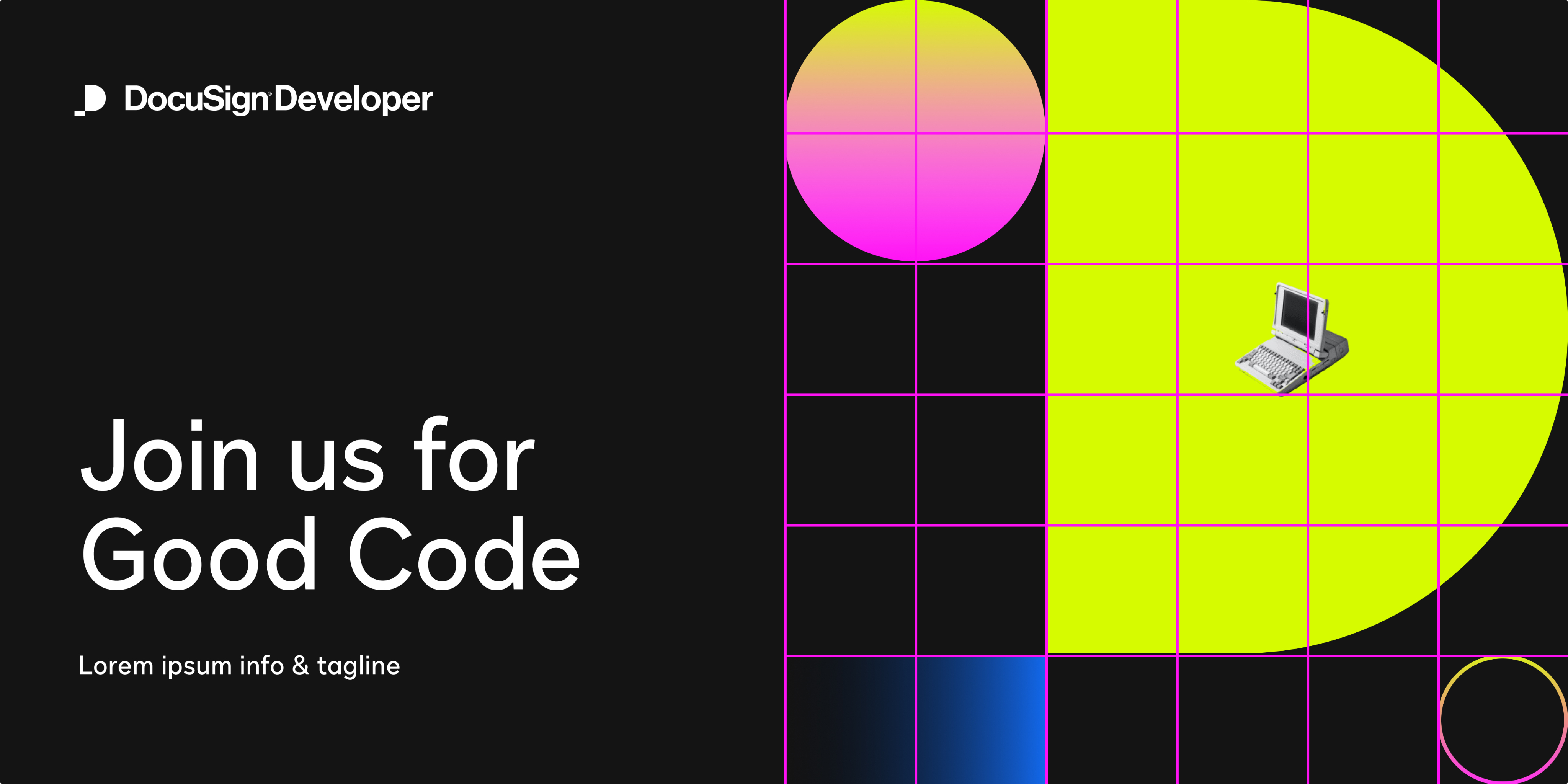 I created branded visuals for Good Code, DocuSign’s annual hackathon focused on building tools for nonprofits and environmental impact. My work included email campaign assets, website banners, and video thumbnails, designed to reflect the event’s purpose while maintaining brand consistency. The visuals aimed to make the hackathon feel both inviting and inspiring for participants around the world.
