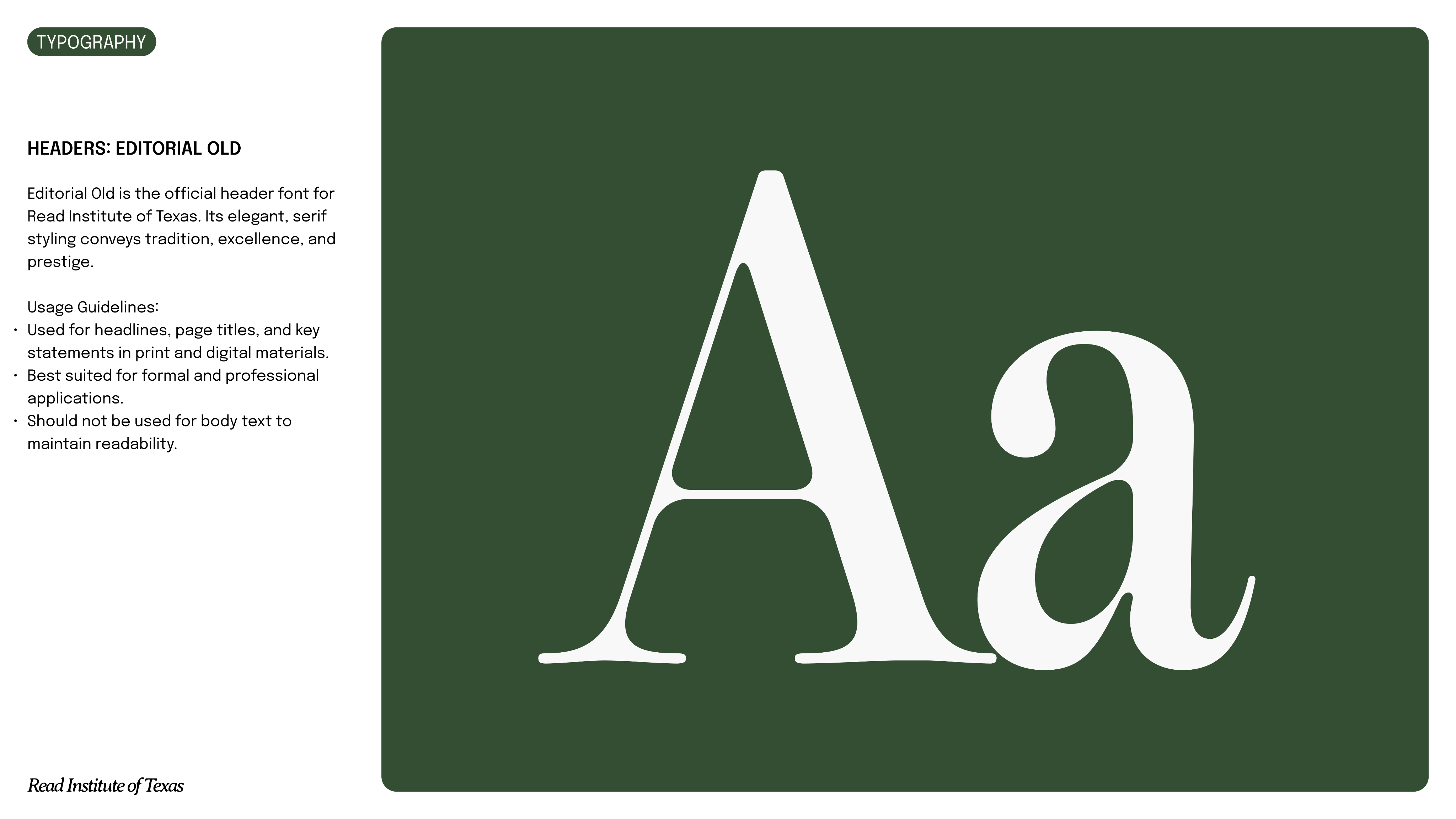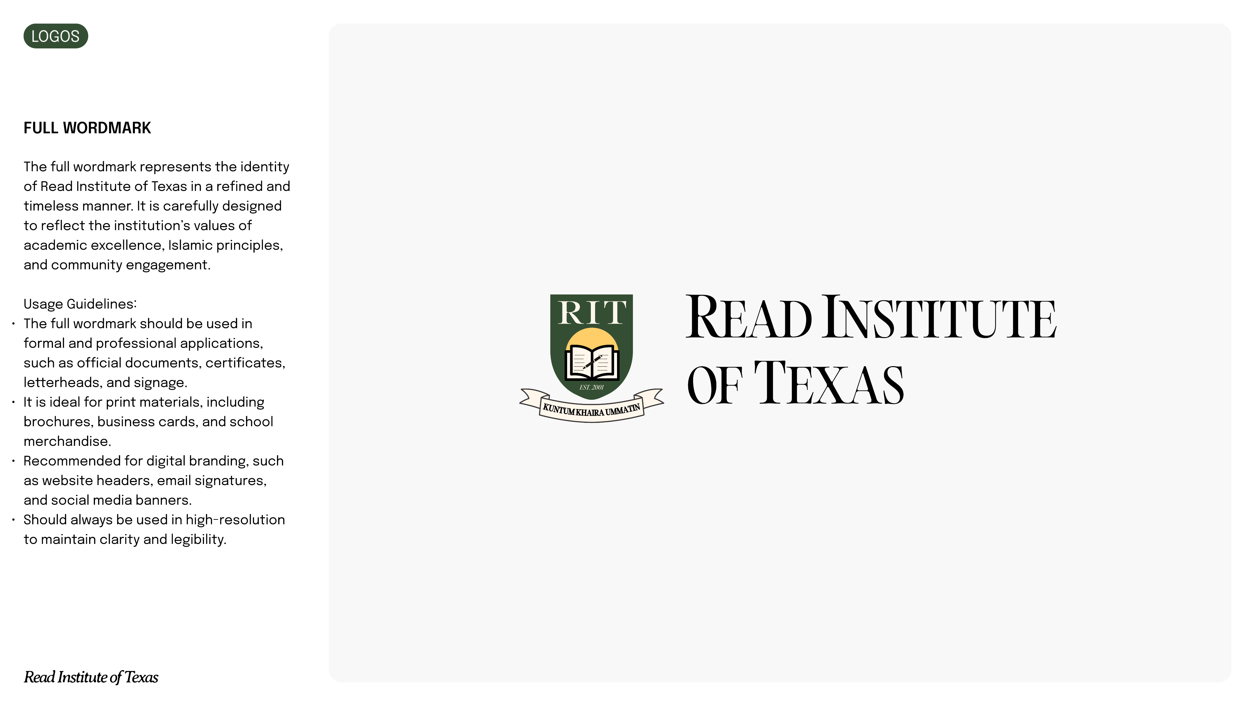 To support the rebrand, I created a full brand kit for Read Institute of Texas. The kit includes a refreshed logo, updated colors, type system, and brand voice, designed to reflect both Montessori values and the school’s spiritual ethos.