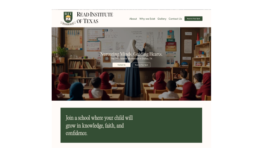 I partnered with Read Institute of Texas, an Islamic Montessori school based in Dallas, to lead a full brand and digital refresh. The goal was to modernize their visual identity and website while staying true to their educational philosophy and community values. I designed a new logo system, simplified their website UX, and built out visual templates and social content to help them communicate clearly with both new and existing families.