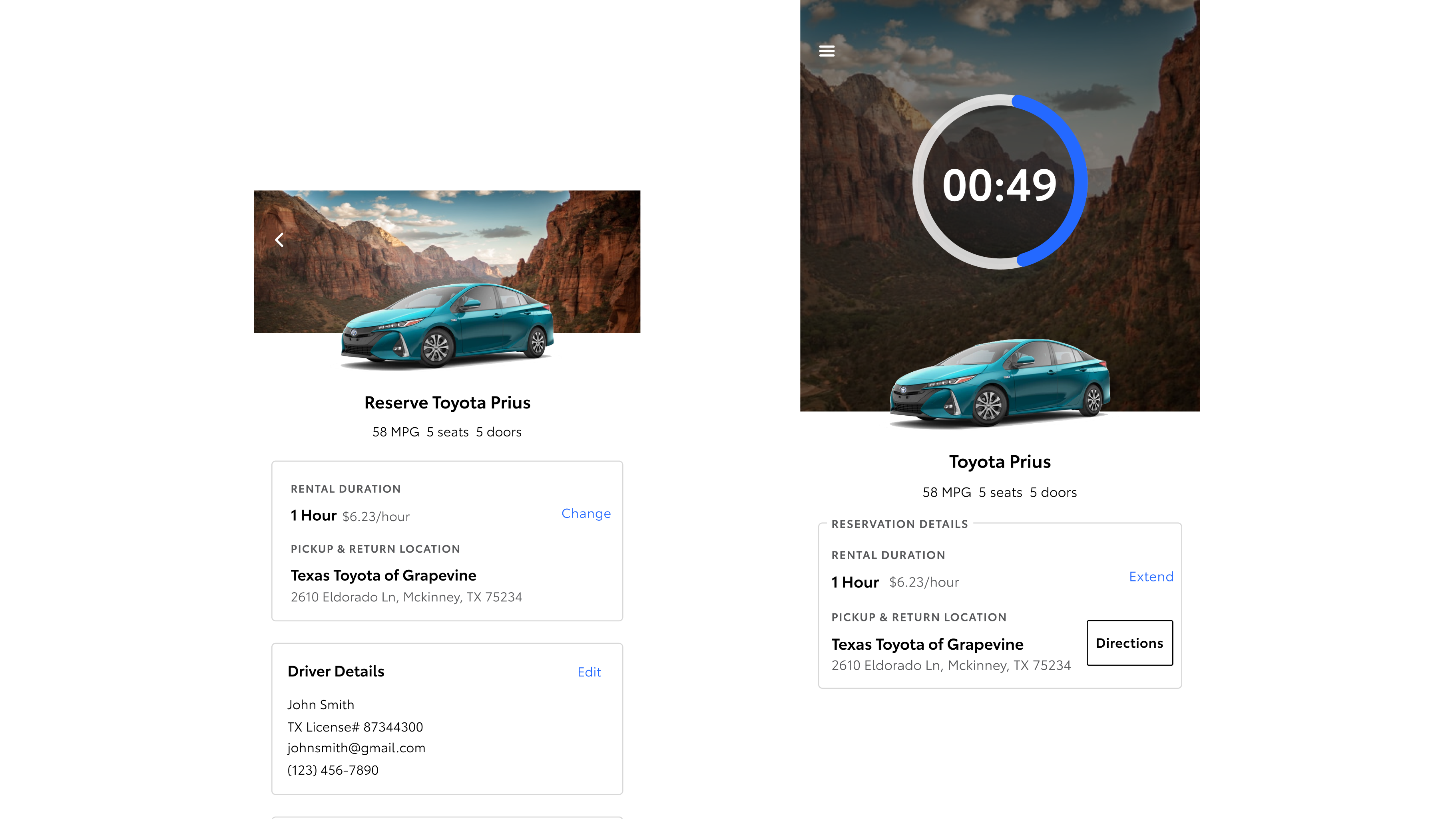 Vamos was designed as a conceptual platform for Toyota that explores a more flexible, pay-as-you-go approach to car rentals. The goal was to simplify the reservation process and elevate the user experience, especially for urban drivers seeking short-term, app-based access to vehicles. I focused on crafting a seamless, mobile-first interface that blends utility and brand experience.